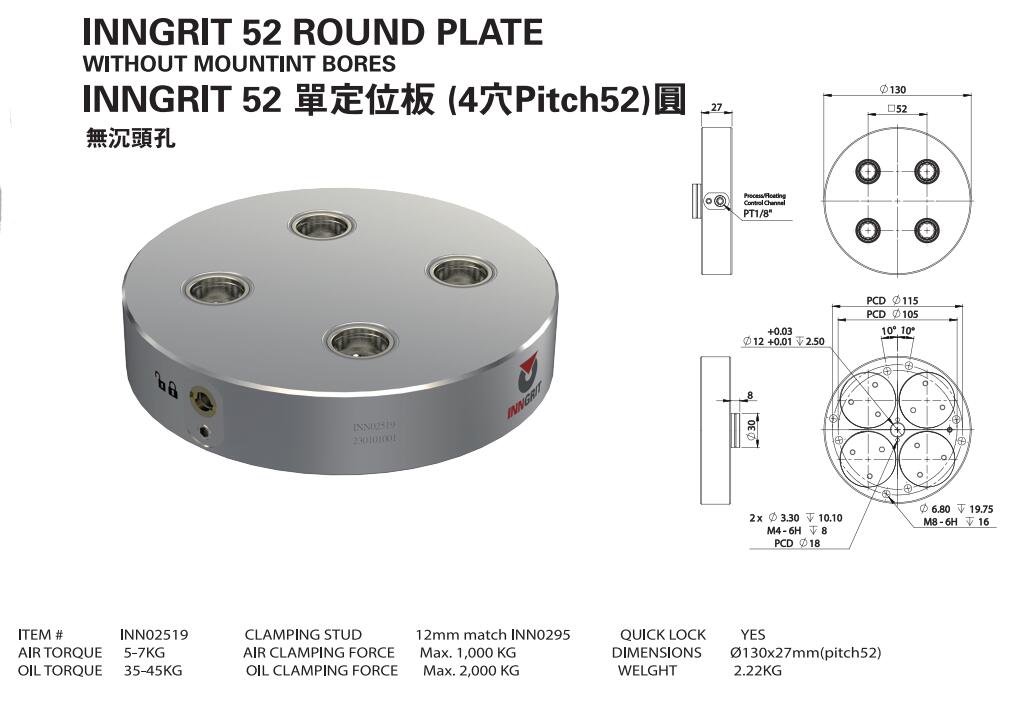 INN02519 單定位板 (4穴Pitch52)圓-無沉頭孔