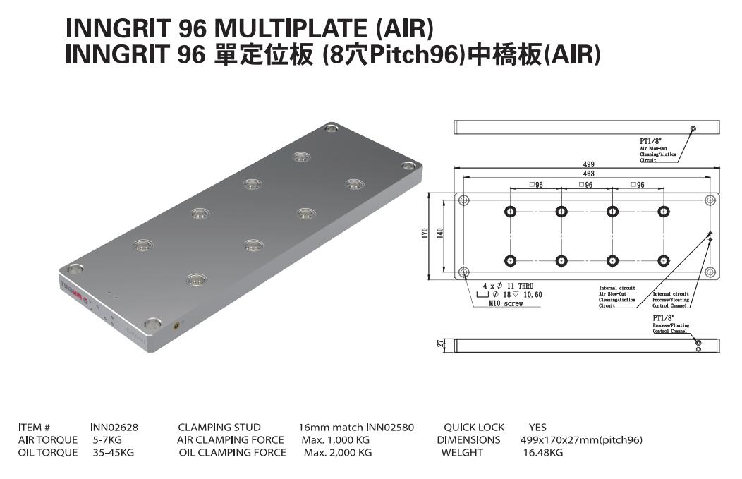INN02628 單定位板 (8穴Pitch96)中橋板(AIR)