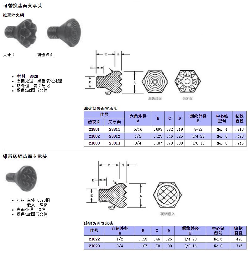可替換齒面支承頭 錐形