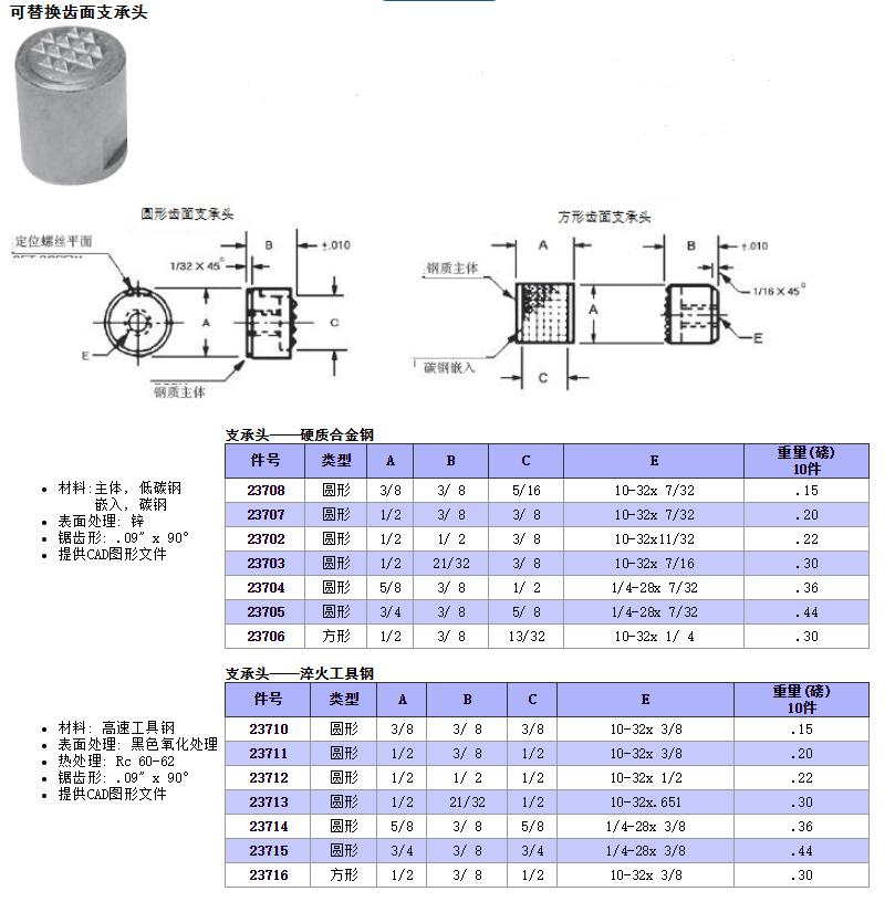 可替換齒面支承頭 圓柱